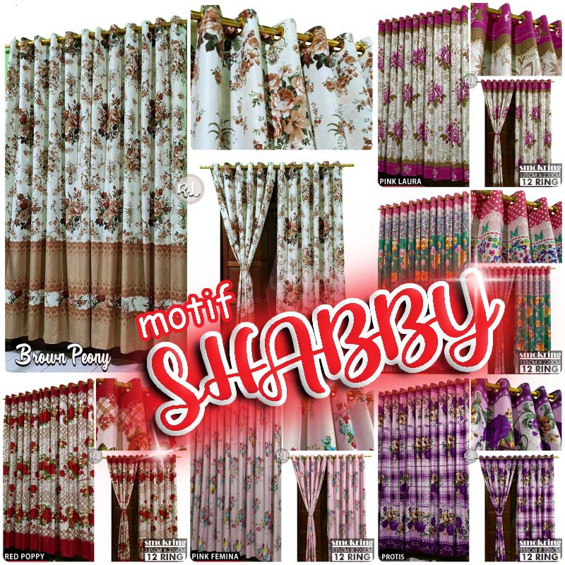 Am165 tirai pintu dan jendela gorden polyester motif bunga.